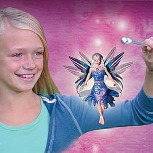 Flitter Fairies magically flit and fly all around you with enchanted flapping wings! It’s easy to guide your fairy with your magic wand! Luckily for us believers, Flitter Fairies have chosen to slip from their Realm Slightly Above Time into the human realm of Timefulness. Their deepest wish is to inspire humans to take better care of the natural world. Each Flitter Fairy seeks to bond with a human friend who shares her most important trait such as compassion, protection or inspiration. Come fly with us and discover the Realm Slightly Above Time! Learn about Eva, Daria and Alexa, play games, enter the Snow Fairy Keeper contest, explore the map of Faewick Forest & Kendlenook Village, and read the fairy book “Slightly Above Time” inside!Flitter Fairies Eva Lake Fairy Magical Flying Toy. Use the magic wand to mesmerize audiences and make this flittering fairy fly. The fairy is attached to a delicate translucent string and features gorgeous glittery wings that use batteries to flap. Slide the included wand along the string, making it appear as if the fairy is floating. Comes with a fairy book, extra batteries and 8 strands of pixie silk. For ages 10 and up. Available Styles:Blue Eva, Gold Daria, Green Alexa. Size:6" tall.
